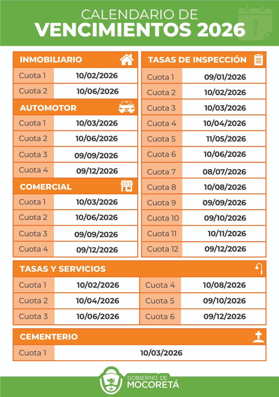 CALENDARIO IMPOSITIVO 2026: EL MUNICIPIO DEFINIÓ LAS FECHAS DE VENCIMIENTO PARA TODOS LOS TRIBUTOS MUNICIPALES